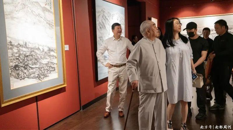 范曾亲生女儿曝“与父失联”后,继子范一夫发布了一张范曾看展照片。